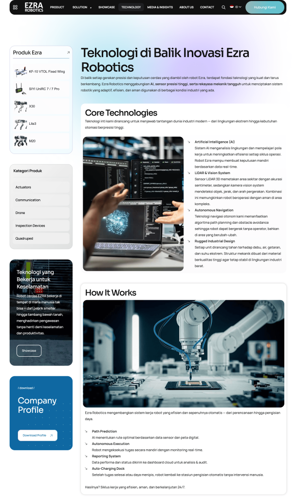 PasBay melakukan transformasi digital melalui revamp website Ezra Robotics dengan pendekatan strategis berbasis industri. Fokus utama adalah memperkuat identitas brand sebagai technology-driven industrial company, meningkatkan struktur navigasi dan konten agar lebih terarah, serta mengoptimalkan SEO untuk meningkatkan visibilitas digital. Website kini tampil lebih modern, scalable, dan siap menjadi fondasi pertumbuhan digital jangka panjang.