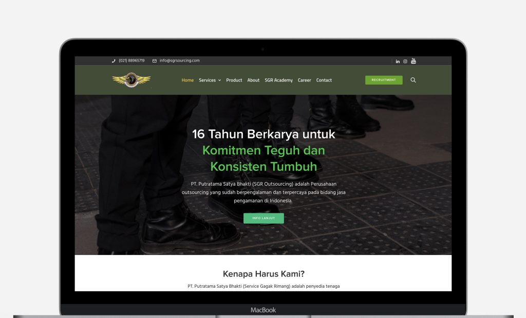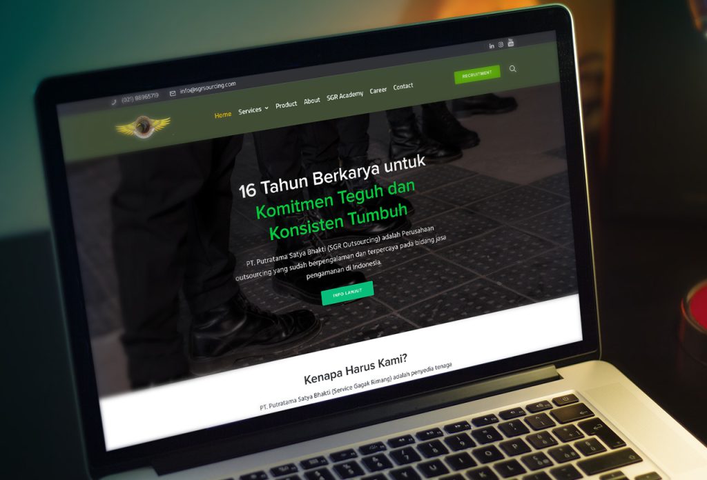 SGR Outsourcing adalah perusahaan yang bergerak di bidang outsourcing. Berpengalaman dan terpercaya di bidang jasa keamanan di Indonesia. Akan sangat aneh jika tidak memiliki kehadiran online, terutama website.